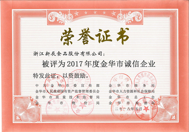 被評(píng)為2017年度“金華市誠(chéng)信企業(yè)”,“區(qū)重點(diǎn)骨干工業(yè)企業(yè)”,“浙江省級(jí)骨干農(nóng)業(yè)龍頭企業(yè)”