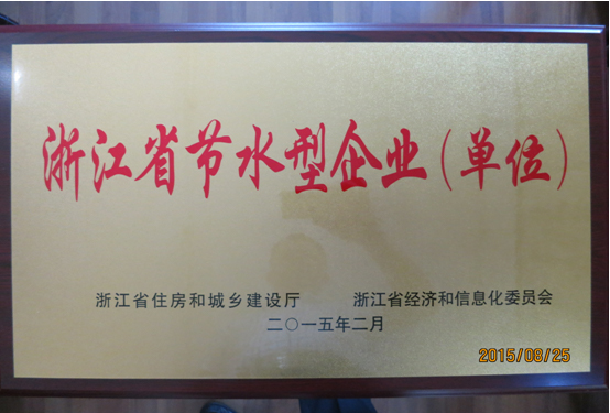 2月榮獲“浙江省節(jié)水型企業(yè)(單位)”