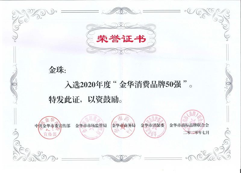 “金珠”入選2020年度“金華消費(fèi)品牌50強(qiáng)”